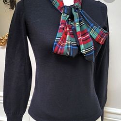 J.Crew Merino Mockneck Black Sweater Tartan Plaid Scarf - size XS$75Princeton, NJ