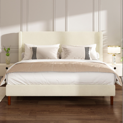 Cream Upholstered Platform Bed Frame – Modern Wingback – NEW – Retail $349$275Pennsauken Township, NJ