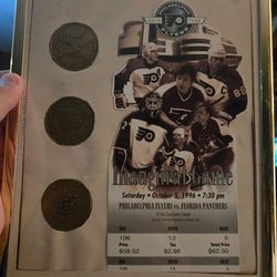 Commemorative framed ticket and coins from the 1996 core states opening$50Cherry Hill, NJ