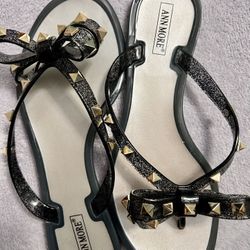 Ann More Studded Bow Thong Sandals Black Jelly Slides Flats 8women's EU 8$20Delair, NJ
