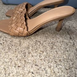 EXPRESS LADIES SIZE 8 TAN BRAIDED 3.5” OPEN TOE HEELS $10Jamison, PA
