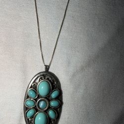 Ladies gorgeous TURQUOISE LARGE PENDANT STERLING SILVER necklace chain p/u Jamison, Pa $15Jamison, PA