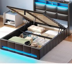 Rolanstar Full Bed Frame with Storage Headboard & 4 Drawers, Metal Platform Bed with Charging Station, LED Single Bed with Side Shelf, No Box Spring N$145Camden, NJ