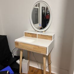 Small Makeup Vanity Desk with Lights, Compact Vanity Desk with Adjustable Brightness Mirror for Small Spaces, Dressing Table with Drawers and Storage $60Jersey City, NJ