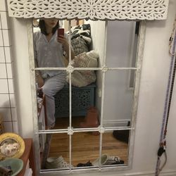 Distressed White Window Pane Wall Mirror with Carved Top$40New York, NY