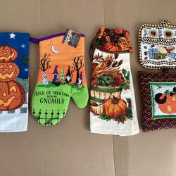 5 NEW Halloween Thanksgiving Seasonal Kitchen Items Oven Mitt Dish Towels Pot Holders$5Floral Park, NY