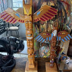Vintage Hand Crafted Totem Poles Made By Real Cherokee $200E Atlantc Bch, NY
