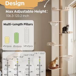Veehoo Floor to Ceiling Cat Tree Height(106-123 Inch) Adjustable, Sturdy Tall Cat Tree with 4.3" Thickened Scratching Posts,$120Brooklyn, NY