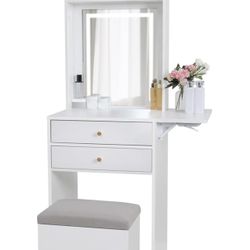 Modern Vanity Desk with Lighted Mirror & Stool-White $150 (brand new in box, includes chair) Lighted mirror with built-in bulbs Multiple drawers & sid$130Union, NJ