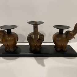 Vintage Trio Carved Wooden Elephants Trunks Up Pillar Candle Holder / Trinket Dish$40Yonkers, NY