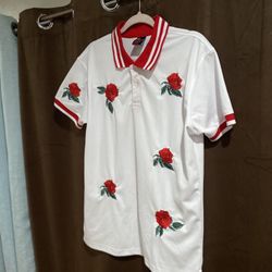 Size Medium, white with blue flowers, button up, shirt$5New York, NY