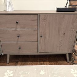 Wood Finish Storage Cabinet with 3 Drawers and Open Shelves$50Queens, NY