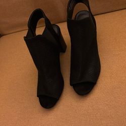Van Eli Black Leather Open toe Block Heel Sandal Perforated Slip-on 8.5$55Edison, NJ