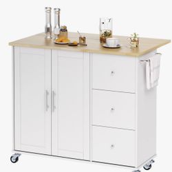 White Kitchen Island Cart with Wooden Bar Top & 2 Stools$112New York, NY