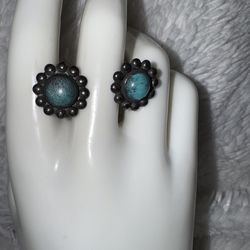 VINTAGE STERLING SILVER NAVAJO TURQUOISE OLD PAWN EARRINGS SCREW BACK$80New Britain, PA