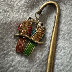 Vintage Shepherd Hook Gold Tone Bookmark w/Jeweled & Enamel Parrots $18Chalfont, PA