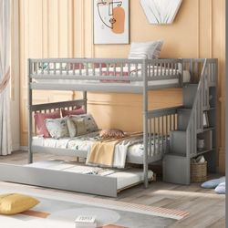 Merax Full Over Bunk Bed With Trundle, Wood Full Bed Framewith Staircase, Storage Space$450Bensalem, PA