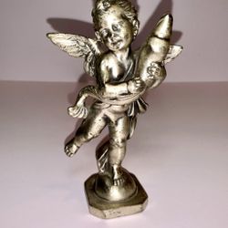 Vintage Rare Peltro Silver Plated Solid Brass Statue Of a Cherub Paperweight $95Monroe Township, NJ