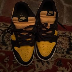This is a Nike Dunk Low "Reverse Goldenrod" sneaker with a black and university gold leather upper. $59Columbus, NJ