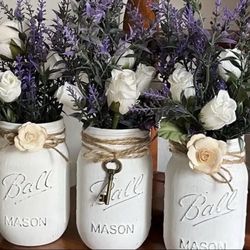 Chalk painted distressed mason jars gift - LAVENDER WHITE ROSES$35Rockaway, NJ