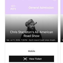 Chris Stapleton – PIT Tickets – Front of Stage – Chula Vista 7/11$350New York, NY