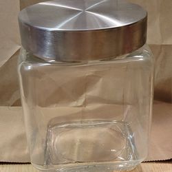 Square Glass Storage Jar with Stainless Steel Lid$8Queens, NY