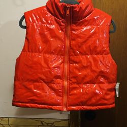 Daisy Orange-Red Shiny Cropped Puffer Vest – Size Small – New With Tags$20Queens, NY