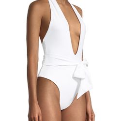 White Ribbed Halter Neck One-Piece Swimsuit$13New York, NY