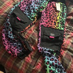 WESC Stockholm Polar Fleece Nylon Neon Rainbow Leopard Unisex Jogger Pant NWT S/XS NWT $40New York, NY