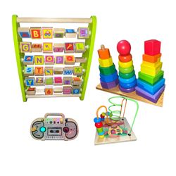 LOT of 4 Montessori Toys Puzzles Busy Board Shape Wooden Block Stacker Abacus Coaster Maze Baby Toddler Preschool$24Piscataway, NJ