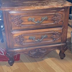 Vintage French provincial Louis XV Carved walnut night stand 2 Drawer End Table Antique$100Queens, NY