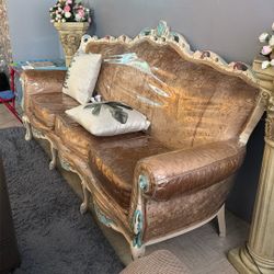 Antique Duncan Phyfe style sofa with a carved dark wood frame and pink upholstery$500Brooklyn, NY