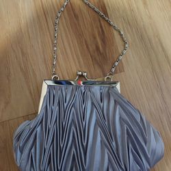 Silver Gray Pleated Satin Evening Bag Purse With Silver Chain Prom Wedding$15Hopatcong, NJ