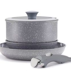 Gray Non Stick Pot and Pan Set with Removable Handle, Ceramic Cookware Set Detachable Handle, 5pcs Induction Kitchen Camping Stackable Pots Pans, Dish$40La Gurda Arpt, NY