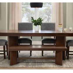 Dining set solid wood + brown upholstered chairs + picnic bench$850Newark, NJ