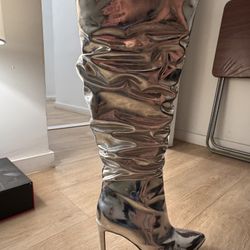Silver Shiny Knee High Boots $45New York, NY
