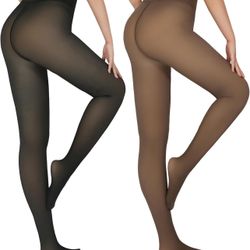 2 Pairs Fleece Lined Tights Women-Thermal Pantyhose leggings Women,Fake Translucent Skin Colored Tights for Winter(medium tall)$20Queens, NY