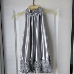 Essentials by Milano Silver High Neck Halter Smocked Bottom Small Glam Shimmer $15Hopatcong, NJ