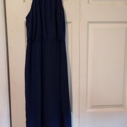 Lulus Halter Midi Dress Navy Blue Slit Lined Zip Slinky Glamour Evening Small$25Hopatcong, NJ