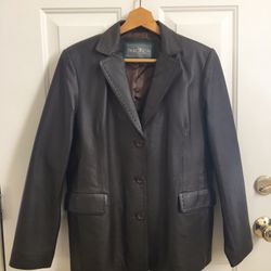 Theory leather Brown blazer$325New York, NY