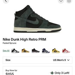 Nike Dunk High Retro PRM Black/ Faded Spruce Size 9$175Brooklyn, NY