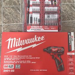 BRAND NEW Milwaukee Cordless 1/4 in. Hex Screwdriver Kit With Two Batteries, Charger, Pouch & FREE Bit Set!$140Bronx, NY