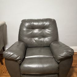 The set features a beige leather couch, a Center Cushion and matching reclining chair. $650Belleville, NJ