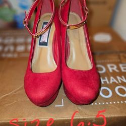Red Suede Wedge Heels with Ankle Strap$20Queens, NY