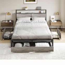HAUSOURCE Base de cama Queen con cabecera de almacenamiento y 4 cajones, plataforma de metal, luces LED, no necesita somier, color gris$150West New York, NJ
