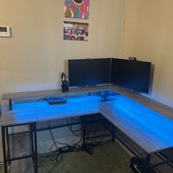 Gray L-Shaped Desk with LED lights$200Queens, NY
