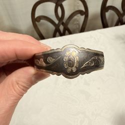 Valentine’s Day! The USSR Vintage Antique Handmade Beautiful Cupronickel Open-cuff bangle bracelet. The central oval hand-painted floral design Ename$33Cliffside Park, NJ
