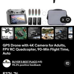 GPS Drone with 4K Camera for Adults, FPV RC Quadcopter, 90-Min Flight Time,$150The Bronx, NY