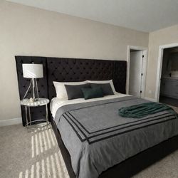 Moving Sale: King Bed Frame with Tall Tufted Headboard (Black Upholstered)$600Fort Lee, NJ