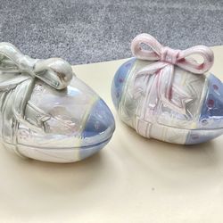 2 Pearlescent Finish Porcelain Easter Egg Lidded Trinket Containers Easter Decorations$10Garden City P, NY